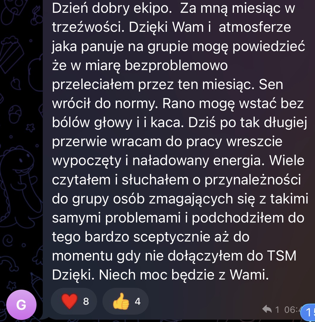 „Wstępując do grupy Marcina, to od 1 dnia przestałem pić. Zacząłem się lepiej czuć, lepiej się odżywiać i lepsze relacje z rodziną"